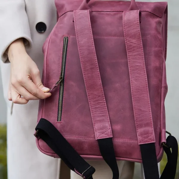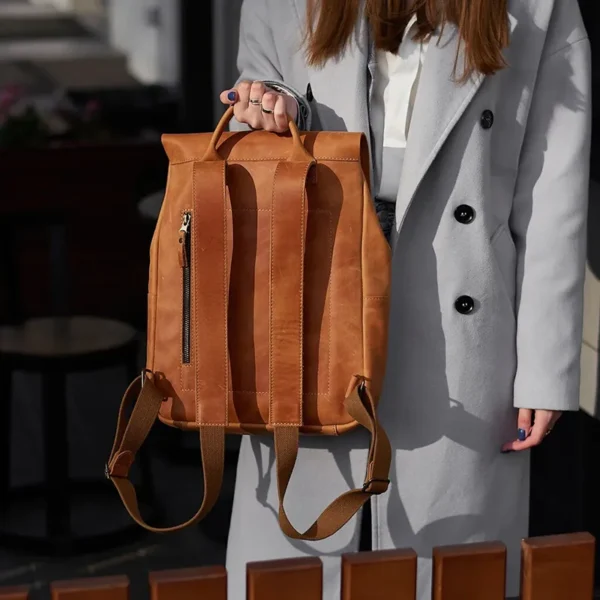 Головне відділення рюкзака закривається надійною блискавкою та магнітним клапаном, що гарантує ідеальну безпеку та зручний доступ до ваших речей. Зверху розміщена зручна шкіряна ручка, яка дозволяє легко переносити рюкзак в руці. Додатковий комфорт створюють металеві кнопки по бокам, що дозволяють самостійно регулювати об’єм вашого рюкзака в залежності від навантаження та зросту користувача .