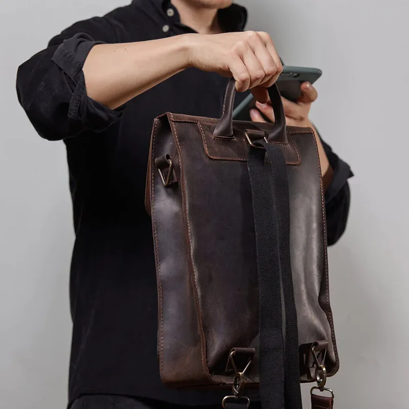Сучасний рюкзак-трансформер з натуральної шкіри представлено у двох розмірах, що дозволяє знайти оптимальний варіант для вашого ноутбука та повсякденних потреб. Додатково ви завжди можете зробити індивідуальне або корпоративне замовлення та вказати унікальні розміри або персональний дизайн для вашого виробу. Обирайте сумку-трансформер «Brit» та насолоджуйтесь комфортом та елегантністю щодня.